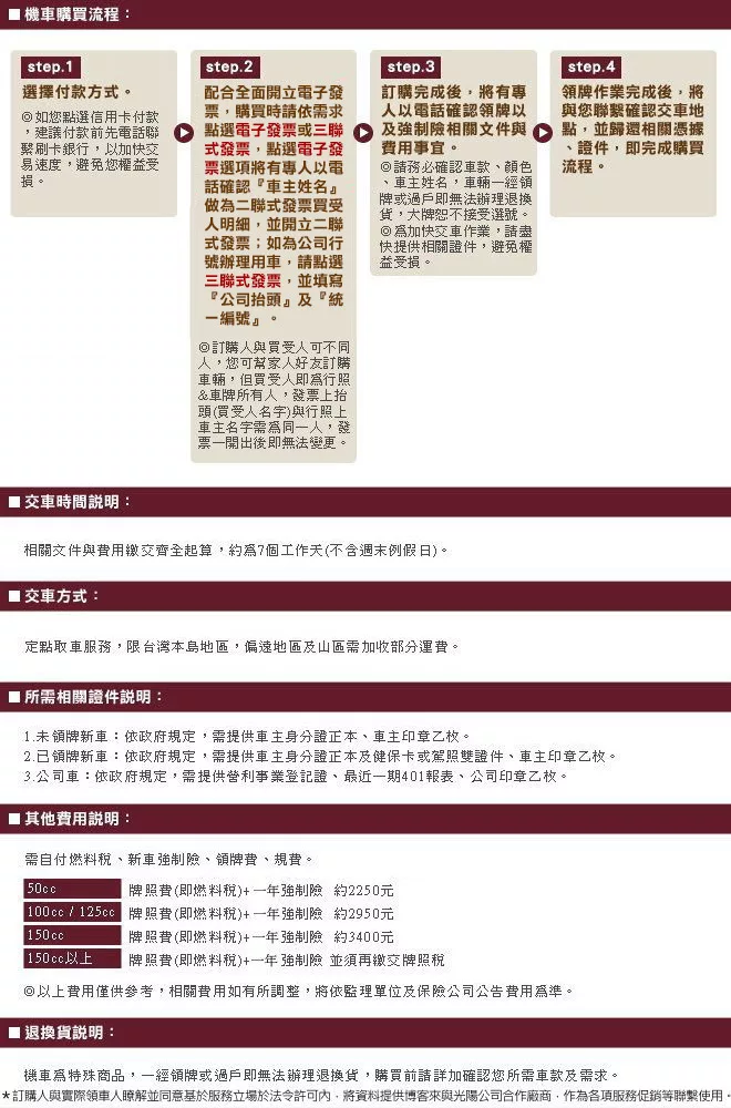 l 180c.c._【一年期燃料費+領牌費+一年期強制險+過戶費+代辦手續費】需另付4500元